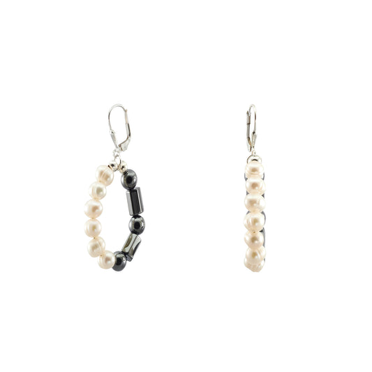 Medium Hoop Earrings with Freshwater Pearls and Hematine
