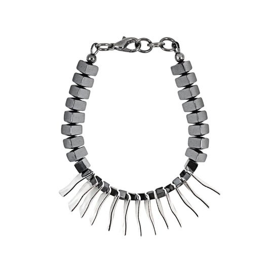 BLACK ARC mini-necklace with PVC, glass and hematine