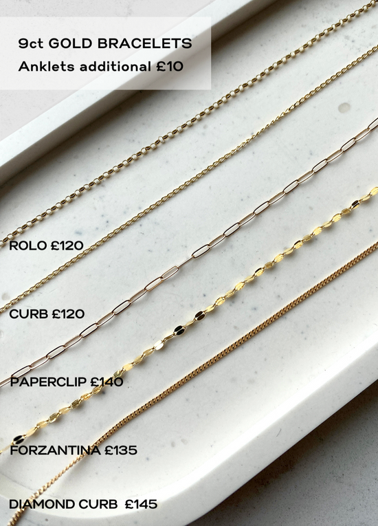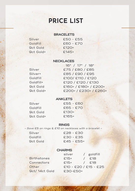 Tailor your jewellery to reflect your unique story. Choose from a variety of chains, including sterling silver, 14ct gold filled and 9ct gold. Add charms and birthstones to create a lasting memory and further personalise your own custom-made jewellery.