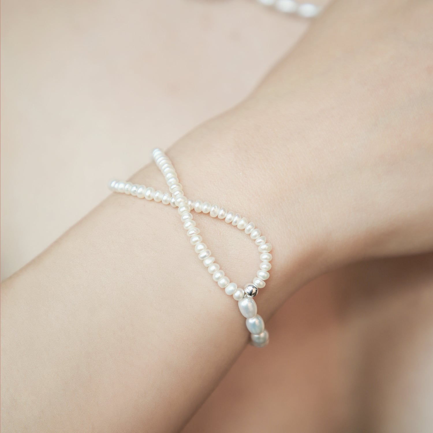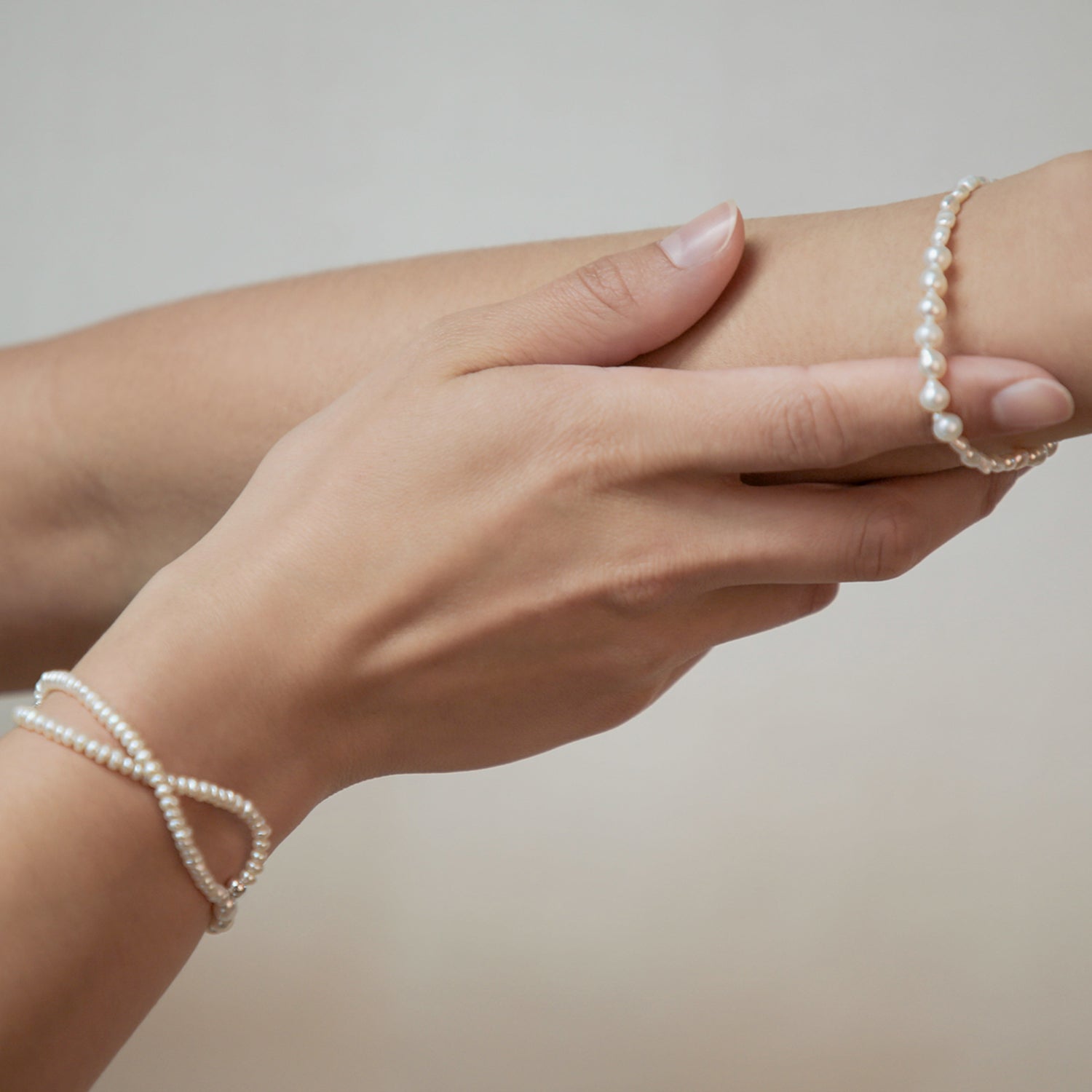 This bracelet is a fresh interpretation of the classic pearls, designed to adorn your wrist in an elegant yet unconventional way.