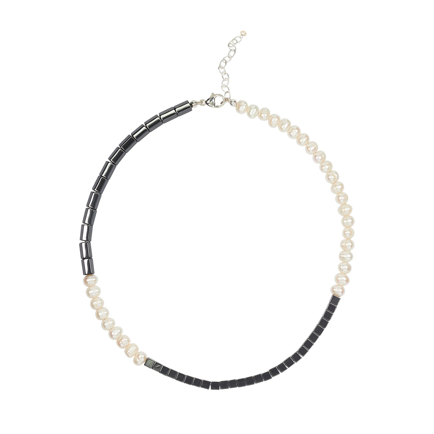 Quadrant Necklace with Freshwater Pearls and Hematine